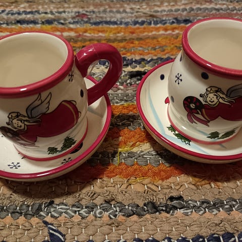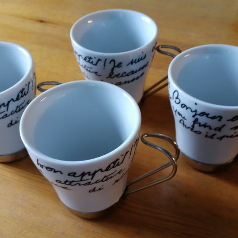 Kirkkaita, kuviolliset, korvallisia Kuppeja, kork.7.5 cm, suun halk.8.5 cm, ehjiä.