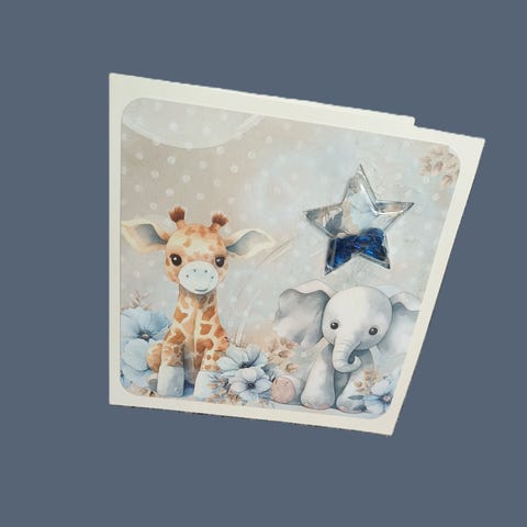 käsin tehty kortti poika vauvalle taittokortti kuorella