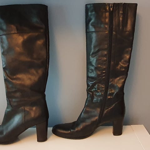 Vähäisellä käytöllä olleet naisten korkeavartiset nahkasaappaat nahkavuorella. Koko 40. Nahkavuoresta irtoaa jotain? Kahdelta suutarilta kysynyt asiaa ja vastaus. Voi käyttää. Roskat voi imuroida lattialta. Made in Italy.