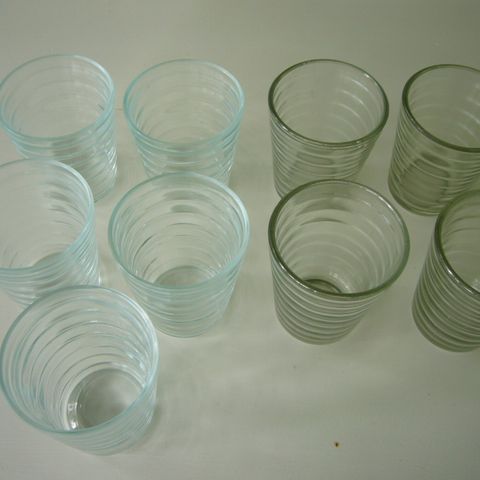 Kaksi Aino Aalto lasia. Toisessa pieni särö, toinen moitteeton.