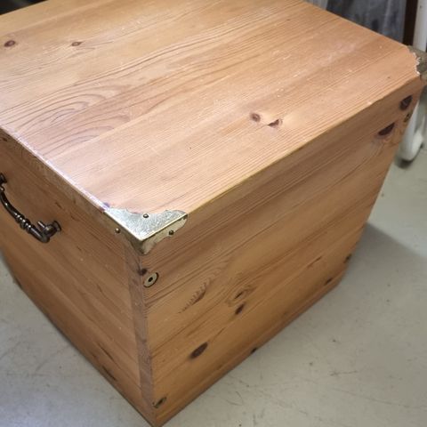 Vanha lelulaatikko. Pinnat jo huonossa kunnossa, mutta laatikkona ihan käyttökelpoinen.