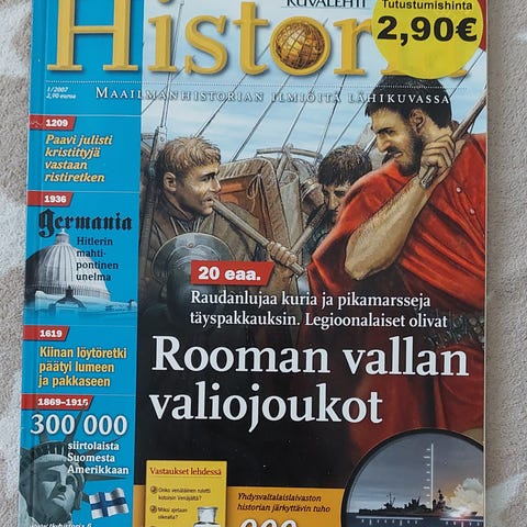 Kuvissa 1.-2. näkyvät "Historia -lehdet" voidaan myydä erikseen 3 e/kpl ja "Historia EKSTRA" 4 eurolla.