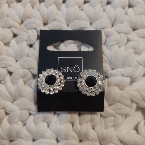 Snö of Swdenin strassikorvakorut, halkaisija n. 1,5 cm. Siistikuntoiset ja näyttävät korvakorut