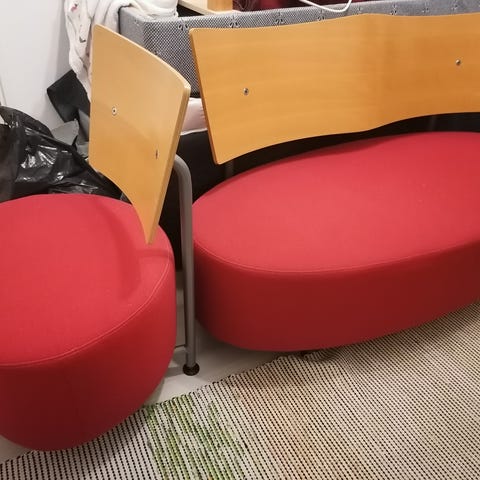Sohvakalusto, sohva, 2 nojatuolia, 4 pikkutuolia ja 2 sohvapöytää, joista isompi k. 66x l. 84 ja s. 60 cm ,pienempi k.52x l. 60x s. 40cm. Siisti. Yht. 500 EUR. Myynti yhtenä kokonaisuutena.