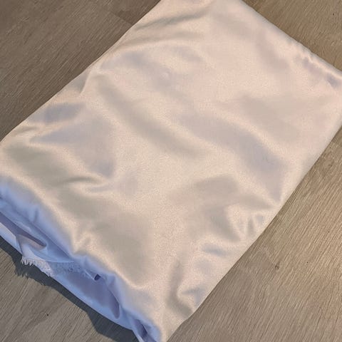 Käyttämättä jäänyt luonnonvalkoinen satiinikangas.