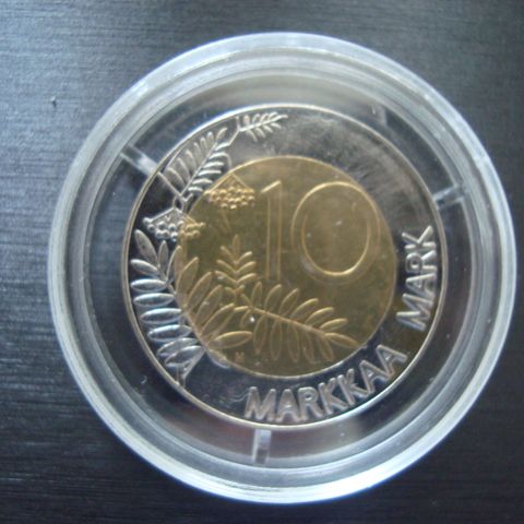 Suomen 1995 10 markkaa EU joutsen kapselissa.