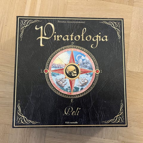 Myydään kuvan Piratologia-lautapeli, kaikki osat tallella (yhden laivan masto kärsinyt).