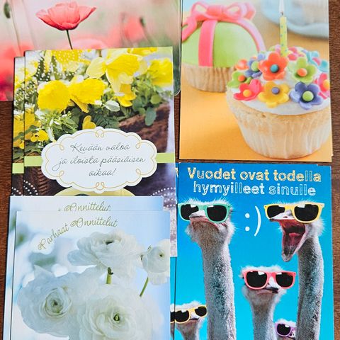 Onnittelukortteja, käyttämättömiä, 6 kpl