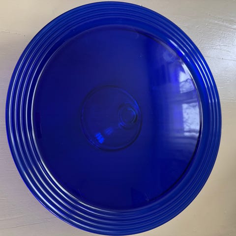 Lasinen uudenveroinen kakkuvati. Kauniit kuviot lautasen alapinnassa. Halkaisija n. 34 cm. Korkeus 9,5cm. Toimii myös salaatin,