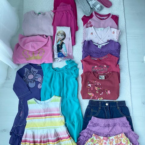 Kuvanmukainen tyttöjen vaatepaketti, koot 104 cm.