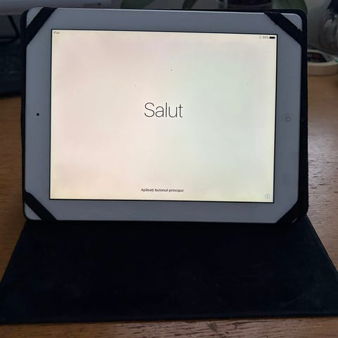 iPad 6th Gen Wi-Fi + suojakuori. Latausportissa vikaa, ei saa laitettua normaalia lightning-kaapelia kiinni. Mukaan yksi kaapeli jolla lataus onnistuu.