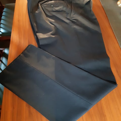 Myyn kuvanmukaiset tummanviinin punaiset suorat housut koko 54. Merkki on Jan Stuart. Materiaali on 55 % polyester ja 45 % villaa. Vyötärön pituus on noin 93cm, lantionympärys noin 120cm ja lahje haarasaumasta mitattuna punttiin on noin 90cm. Housuja on vähän käytetty ja ovat siistit ja hyväkuntoiset. Hinnan lisäksi postikulut tai nouto Ruoveden keskustasta.
