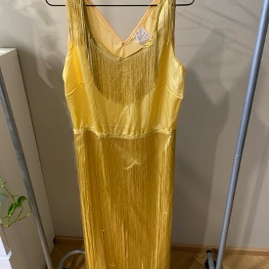 Myytävänä kerran käytetty charlestonmekko + asusteet 1920- luvun juhlissa ja säilytetty pukupussissa lämpimässä sisällä.