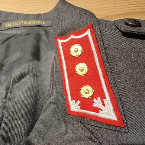 Viime vuosisadan puolelta säilössäni olleet sotilasmerkit ovat myytävänä keräilijälle. Punamusta, leikkaamaton kenttätykistön kauluslaattapari ja violettikeltainen viestimiehen koulutushaaramerkki ovat yhteishinnoitellut. Kurkista monia (mm. vintagea, keräilytavaraa, merkkejä, astioita, figuureja, nukkeja, vaatteita, jalkineita, metallitavaraa) myyntituotteitani Torissa ja tee tilaus. Samassa paketissa useampi tuote kohtuullistaa postikulujasi.