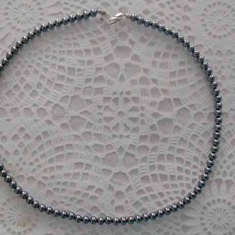 Hopeinen verikivi-kaulakoru panssariketjulla.