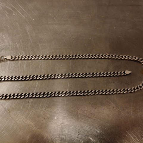 Panssariketjun pituus 45 cm, leveys 1,2 mm, hopealeima KJ 925, paino yhteensä 7,6 g.