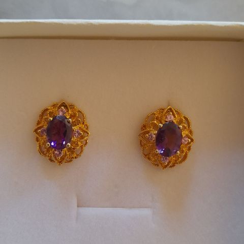 Upeat kultaiset ametistikorvakorut. Bruttopaino 2.7 gr 585 kulta.