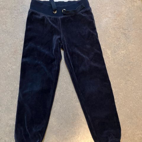 Myydään siistit tummanruskeat velour collegehousut. koko 116.