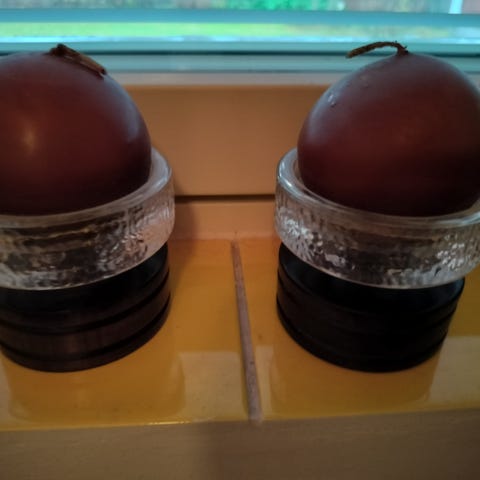 Jouluisia kynttilän jalkoja 2, kuvanmukaiset, siistit, mutta pientä fiksausta, kynttilä on vähän mustuttanut kynttilän pesää, paras suoja olisi metallikupit.