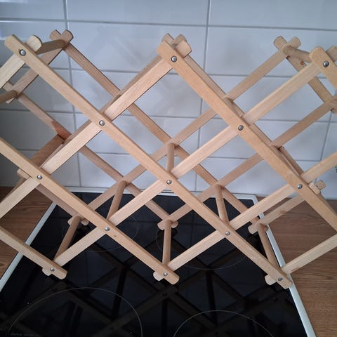 Uudenveroinen hyvä viinipulloteline joka on metallia. Mitat: