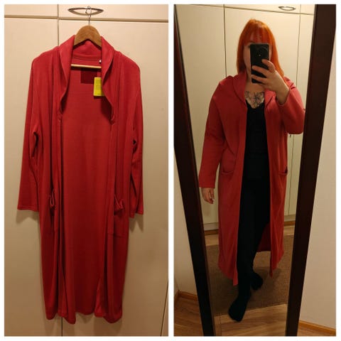 Escada Sportin upea neulemekko. Koko L. Käyttämätön. Alaosassa röyhelöitä. Materiaali 50% viskoosia, 30% puuvillaa ja 20% villaa. Kai- kai n. 48 cm. Pituus n. 107 cm.