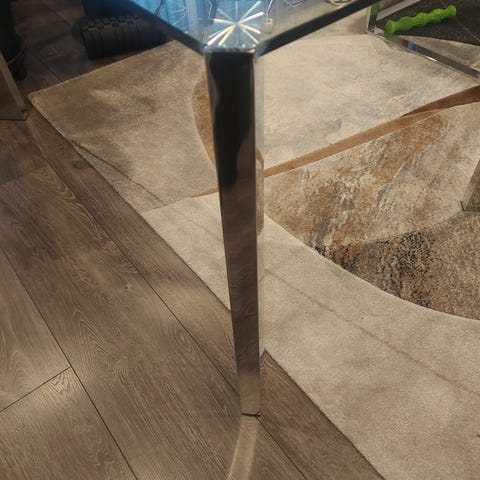 Uuden pöydän tieltä pois hyväkuntoisen lasipöydän, joka sopii täydellisesti niin olohuoneeseen, ruokailutilaan kuin toimistoonkin. Pöytä on valmistettu kestävästä karkaistusta lasista ja siinä on tyylikkäät metallijalat, jotka tuovat modernia ilmettä tilaan.