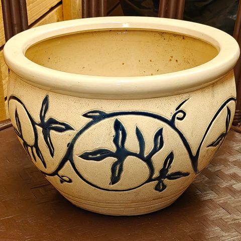 Painava betoninen kukkaruukku / muu astia. Korkeus 36 cm, halkaisija ulkoreuna 25 cm. Toimii hyvin myös eteisessä sateenvarjo, lätkämaila ym. telineenä.