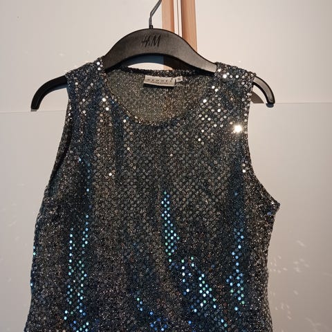 toppi t-paita paita hyväkuntoinen juhla hopea hihaton