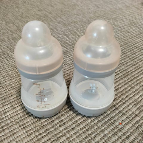 Nuk tuttipullo kokoa 150ml sinisellä tai vihreällä korkeilla 2e. Siniseen ei kantta.