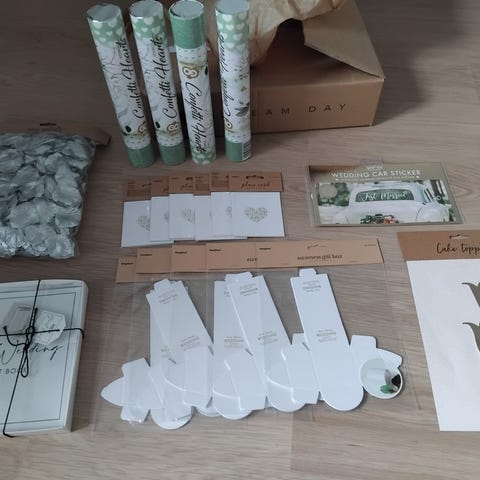 Jäljellä on vielä koristeita, maaleja, photobooth-juttuja ym.