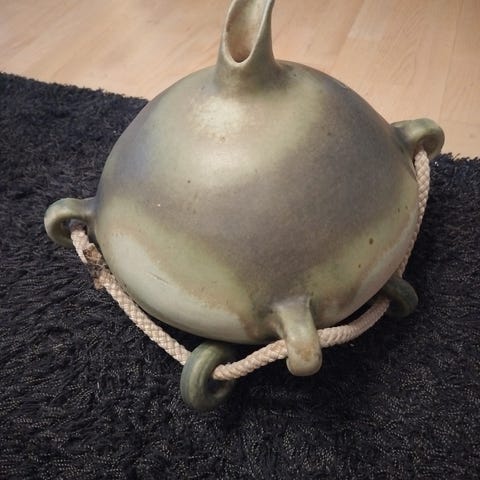 Pieni keraaminen vanha pullo. Sisällä kynttilän jämiä. Käy vaikka suitsutuskipoksi.