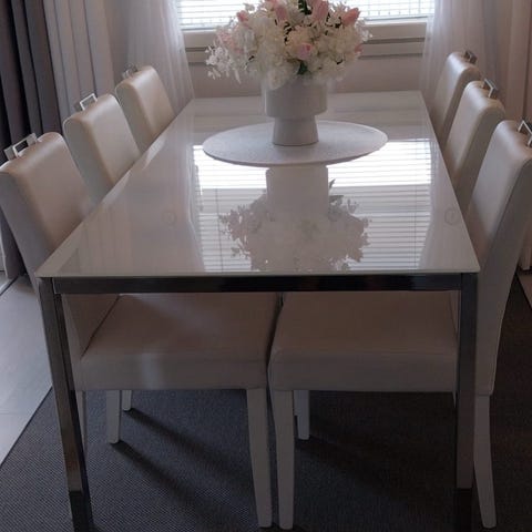 Ruokapöytä on tukeva ja hyvässä kunnossa.