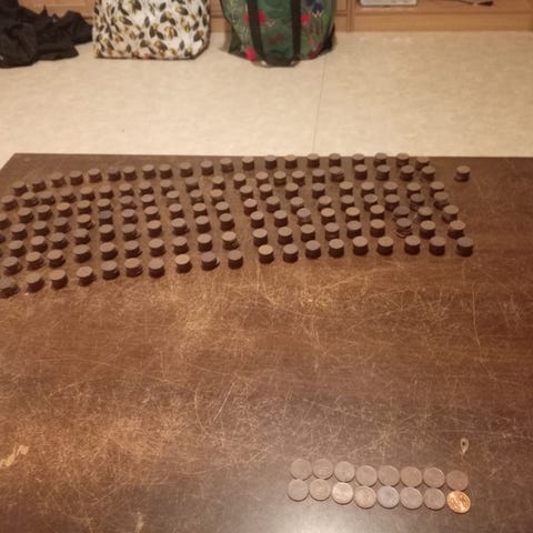 10kpl 5 pennin kolikkoja
