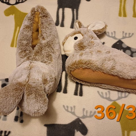 Kivat ja pehmeät aamutossut laulaja Robin merkkiä koko 33. Monet samanlaiset eri kokoa myynnissä . Meillä ei eläimiä.