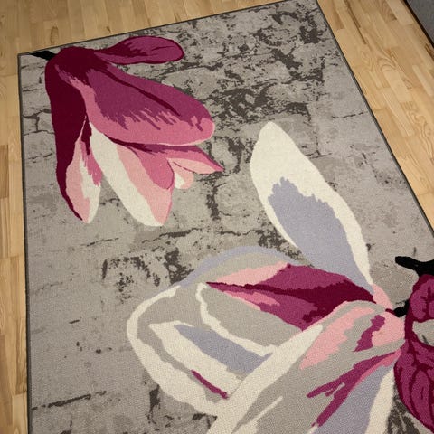 Vielä paketissaan Vallilan harmaa 68 × 110cm kokoinen harmaa matto. Googlettamalla Sydänpuu Vallila löytyy kuosi kokonaisuudessaan. Jäi palauttamatta ajoissa kun ei meillä sopinutkaan väreihin. Vain nouto Salon Enolasta. Tässä ei liukuestepohjaa.