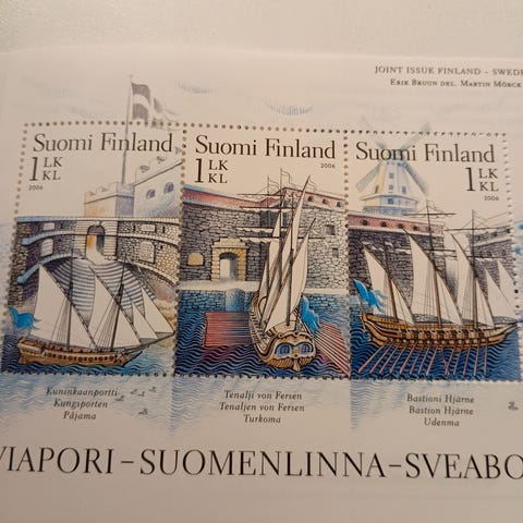 Postituoreet merkit, 3 + 2 postimerkkiä.