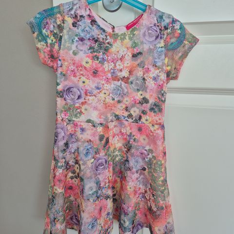 Myytävänä Next kaunis sinivalkoinen mekko kokoa 116 cm, kaluksessa strassikoristeet.