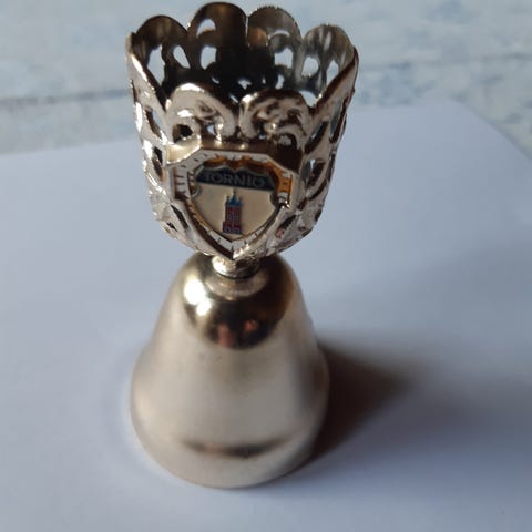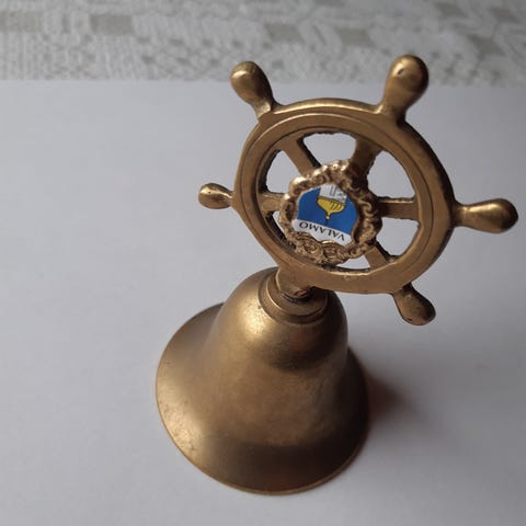 Kuvan mukainen soittokello, valmistanut H. Juutilainen Kaavi, jota käytettiin ennen koulun välituntikellona.Täyttä messinkiä.