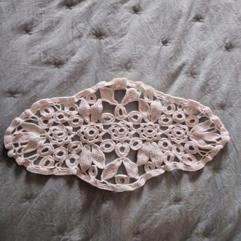 Pääkuvan vasen yläkulma isoin pitsiliina. Halkaisija noin 45cm. ( 8 euroa )