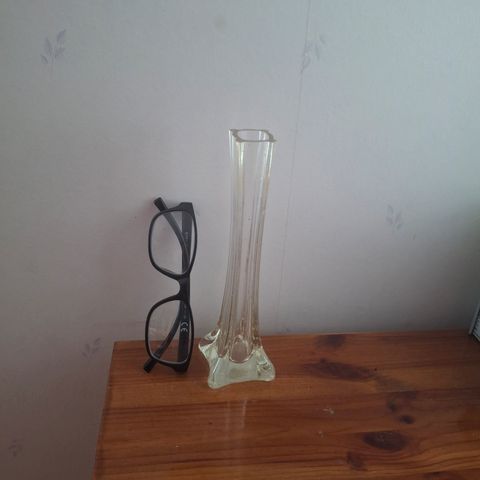 1. Vanha lasimaljakko kirkasta lasia. korkeus 230mm.