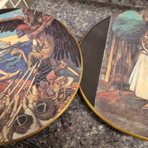 Erilaisia Arabia Akseli Gallen-Kallela Kalevala-lautasia.