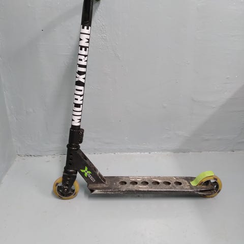 Vuoden vanha Micron laadukas kolmipyöräinen skuutti. Etupyörissä dynamolla toimivat LED-valot. Säädettävä skuutti 5-12 -vuotiaalle, tällä potkuttelee pitkään. Tangon saa irti rungosta. Vain nouto Pasilasta. Mmm.