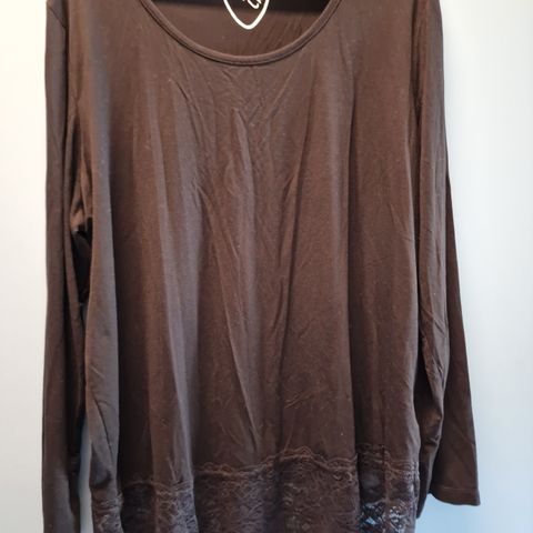 Valkoinen pitsipusero, edessä ja takana joustava trikoovuori, hihoissa ei siis vuorta.