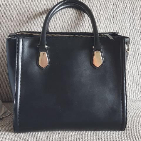 Stockmannilta ostettu uusi, käyttämätön musta nahkalaukku. Lev 40, kork 34.5, ja hihnan pit vetoketjusta alk 24 cm.