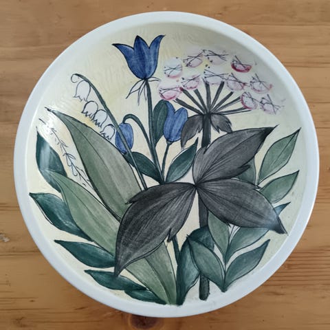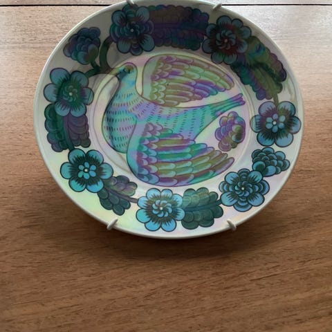 Harvinainen omakätinen signeeraus lautasen etupuolella, Arabia. Naile Wafin (muissa vastaavanlaisissa lautasissa on kirjoitus takana signeeraus vain NF takana, ja Arabian leima, tässä edessä joka on aivan oma Naile Wafinin signeeraus Arabia kirjoitettuna, joka tekee siitä erittäin harvinaisen, katsokaa muilta sivuilta löytyykö signeerausta edestä).