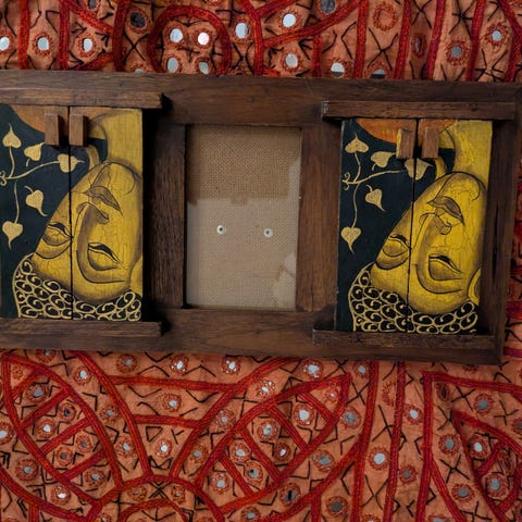 Rogaska tyylikäs valokuvakehys kristallia eli lasia kullanvärisellä reunuksella. Valokuvakehyksen koko on n. 20 x 20 cm. Valokuvan koko n. 10 x 10 cm.