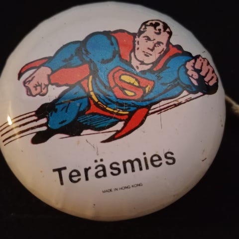 Vintiltäni monien vintage-lelujen joukosta bongasin tämän peltijojon. 90-luvun alussa tuli jälleen muoti-ilmiöksi jojoilu, jota jo 30-luvulla oli harrastettu. Kokeilin ja jotenkin onnistuinkin saamaan vierittämällä narua pitkin jojon takaisin käteeni kuin hissin ikään. Tämä jojo on läpimitaltaan 5cm. Alapa innostamaan toisiakin muistelemaan jojoilun hauskuutta ja temppuja. Niitä löydät historian kera netistä kiinnostuksesi mukaan. Muutamia erilaisia olen myynyt Torissa aiemmin. Kurkista monenlaisia (mm. vintagea, keräilytavaraa, astioita, nukkeja, figuureita, merkkejä, vaatteita, jalkineita, metallitavaraa) ilmoituksiani Torissa, saatat tehdä löydön. Samassa paketissa useampi tuote kohtuullistaa postikulujasi.