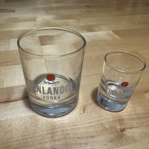 Finlandia Vodka lasi McLaren logolla. Finlandia Vodka kuvion suunnittelija Tapio Wirkkala.