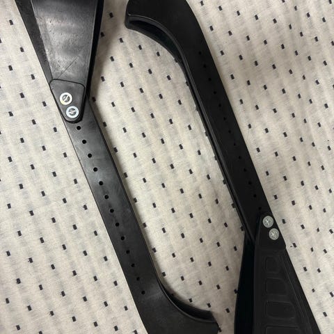 Jääkiekossa käytettävien säärisuojien pehmustepari, hyväkuntoiset. Merkkitieto?