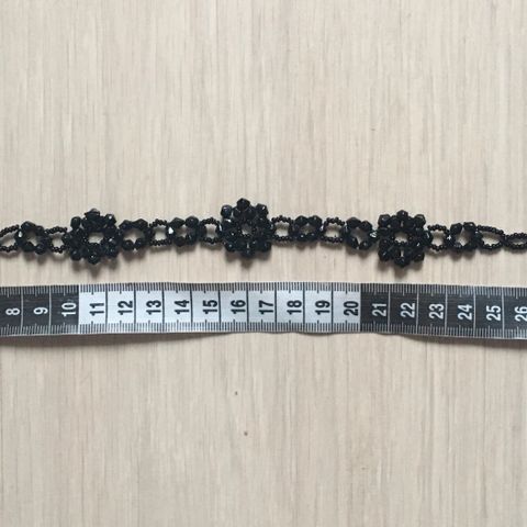 Uusi musta lyhyt kaulakoru jossa kolme helmiä.